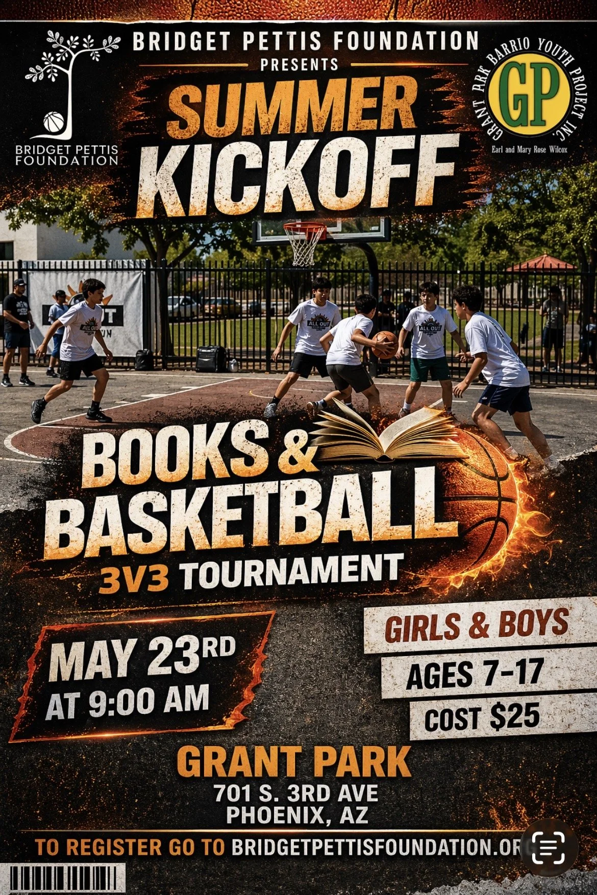 Join the Bridget Pettis Foundation for our Books & Basketball Summer Kickoff 3-ON-3 Tournament, where youth come together to Compete, Connect, and Grow both on and off the court.